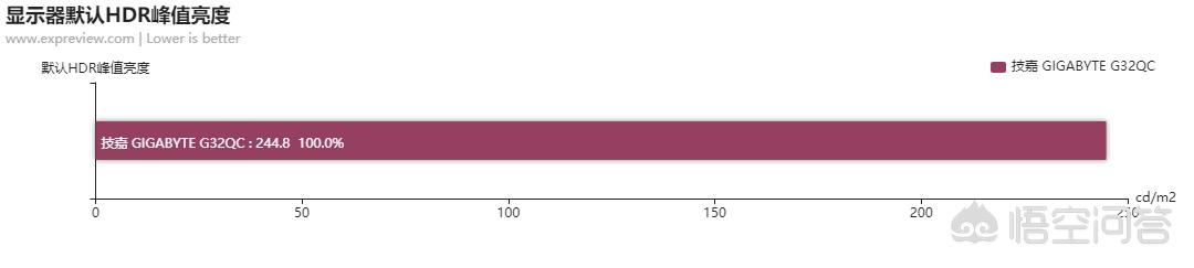 经测量下来。它在进入HDR模式后的亮度为244.8cd/m2。比认证的400要低不少。不过这并没有什么问题。因为玩家在Windwos HD Color设定把「SDR内容的外观」拉至100后。技嘉 GIGABYTE G32QC显示器的亮度可以提高至最高426.8 cd/m2。也就符合DisplayHDR 400的标准了。