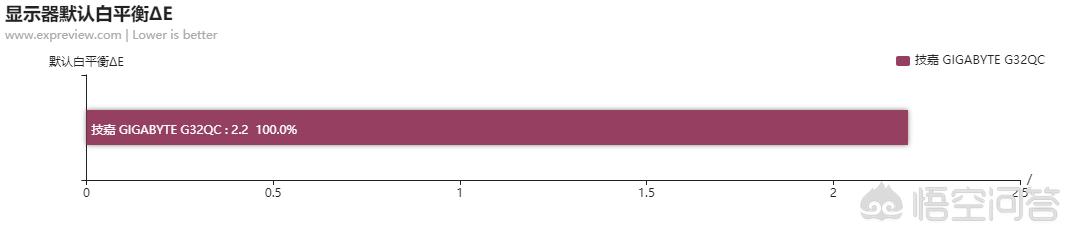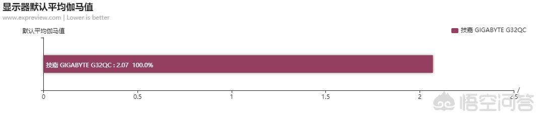 在默认模式下。技嘉 GIGABYTE G32QC显示器的平均伽马值为2.07左右。白平衡ΔE为2.2。另外可以看到在颜色平衡中蓝色的水平比其余两色的要高。但也只是高一点点。意味着玩家在观看白色的内容时基本上是察觉不到偏蓝的。