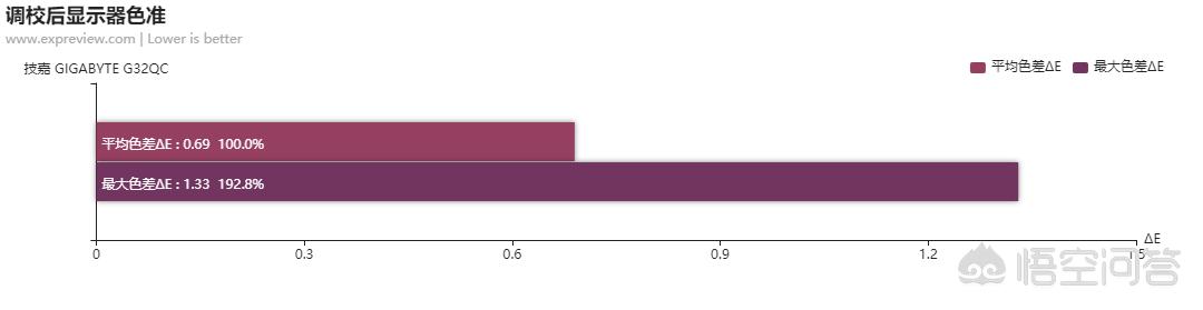 在色准方面。技嘉 GIGABYTE G32QC显示器在经过校色后sRGB平均色准ΔE为0.69。最大为1.33。在颜色饱和度ΔE方面。其平均ΔE为0.67。最大ΔE则是1.42。在经过校色后已经可以说是很准确了。