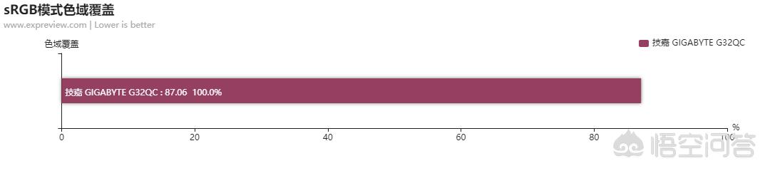 技嘉 GIGABYTE G32QC显示器本身还有一个sRGB模式。因此笔者也把该模式的测量结果放出来。