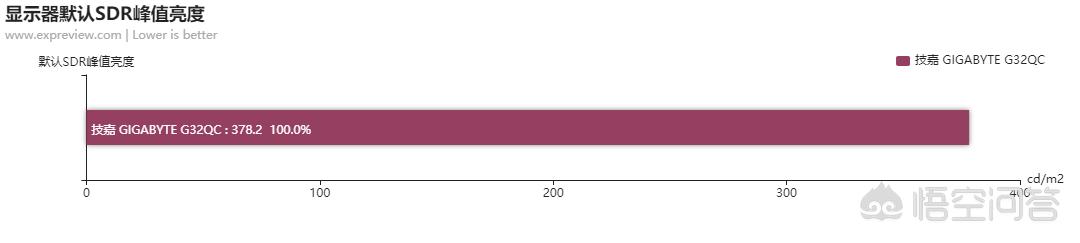 默认模式之下技嘉 GIGABYTE G32QC显示器的SDR亮度为378.2 cd/m2。如果玩家在此基础上把亮度调至100的话。那么其中央区域最高亮度可以去到429.8 cd/m2。而这时整个屏幕的平均亮度为398.4cd/m2。