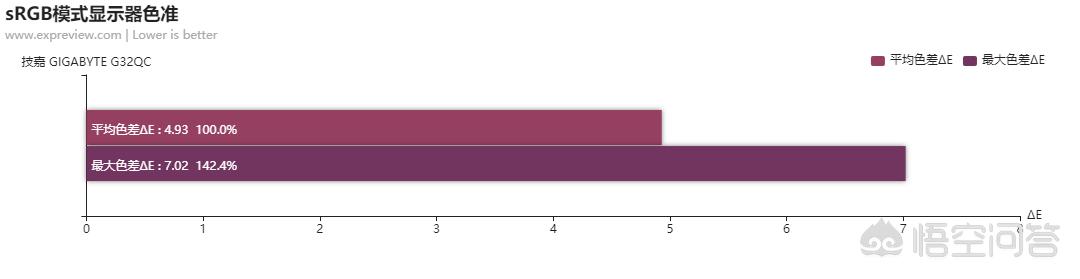 而由于对于一般玩家来说sRGB是最常用的色域。因此这部分测量的。是显示器在默认模式下的sRGB的色彩表现。如果显示器本身有其他的色彩模式的话也会在这部分一并测量。