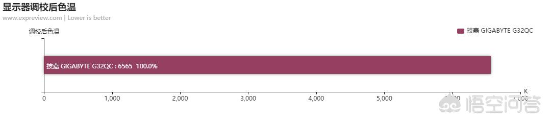 而色温在调校后则是6565K。同样也是与标准的6500K非常接近。因此也可以说是在调校前后的色温都是一样的。这也再次从侧面反映出技嘉 GIGABYTE G32QC显示器的出厂色温是多么好。