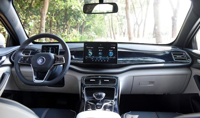 第二台车是销量最高的秦PLUS DM-i。这是台插电混动轿车。采用ECVT架构。运动模式为80km/h以内增程、高速区间为油电混合。不充电的长途油耗为4.5L/100km左右。日常代步可以充电通勤。秦PLUS的尺寸标准和影豹相当。空间都比较充足。不过在驾驶感受方面是有差异的。