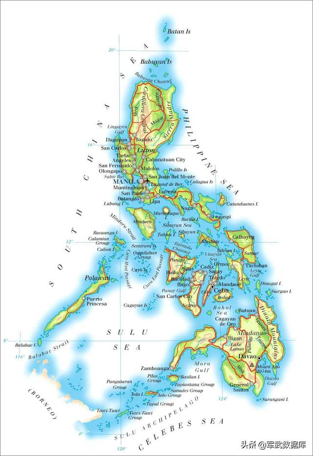 菲律宾的军事实力在亚洲都是倒数的。这主要是由于菲律宾本身的地理特性决定的。看下地图: