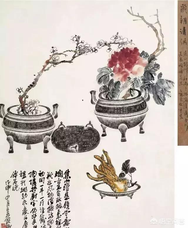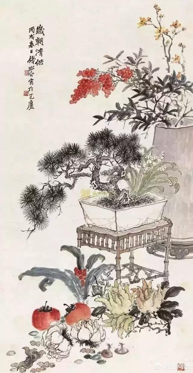 在中国的传统文化传承中。对于祈盼新年美好愿景。“岁朝清供图”只是其中一个表现形式。清朝至今。也出现了很多有影响力的“岁朝清供图”。有乾隆皇帝的作品。也有当代大师齐白石的画作。