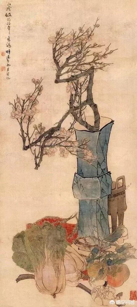 岁朝图在后期的演变中。大致分为两类。像上图。就是一种表现人们喜庆的图画。但是最重要的是“岁朝清供图”。将花卉、蔬菜作为主要题材。绘制画作。