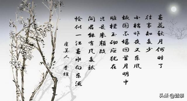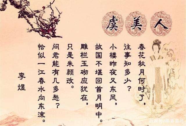 《虞美人》这首词。是李煜的代表作品。也是李后主的绝命词。全词不加修饰。不用典故。以白描手法寓景抒情。直抒胸臆。