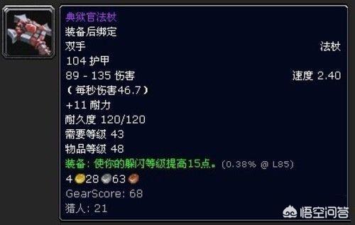 装备后绑定 双手 法杖 119 - 180伤害 速度 3.70 (每秒伤害40.4) +11 智力 +11 精神 需要等级 35 装备: 提高所有法术和魔法效果所造成的伤害和治疗效果。最多26点。