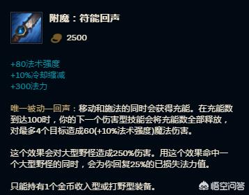 有了这件打野符能回声。本身也带着惩戒。完全可以再对线至于去对面野区或者河道。收一下F6或者小螃蟹。还能通过惩戒来回复状态。一举两得的事情。不过尽量不要刷自己家的野区。小心自己打野生气不帮忙GANK了哦。