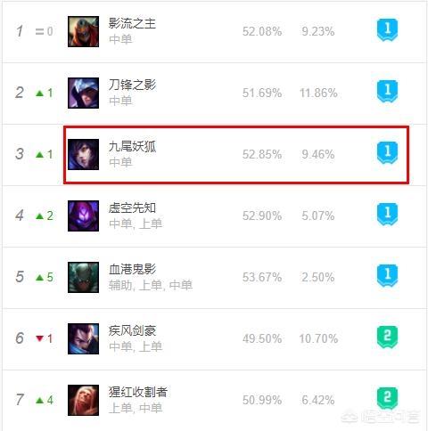 作为物理和法师刺客劫以及狐狸是很相像的英雄。虽然经过多次削弱但是在rank当中的表现还是很OK的。在近期的版本当中我们会发现狐狸这个英雄已经悄悄的攀升到了第三的位置。并且胜率的表现也是很不错的。