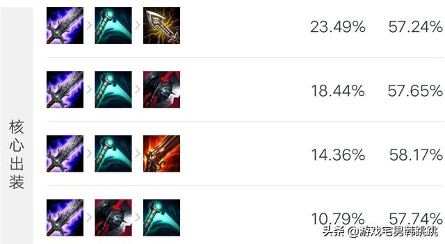 然后出装有非常多的选择:火炮或者绿叉。无尽。黑切。影魔刀。水银。穿甲弓。复活甲。甚至死亡之舞。鞋子一般建议攻速鞋。对面ad很多或者对面控制多ap多可以出护甲鞋或者魔抗鞋。