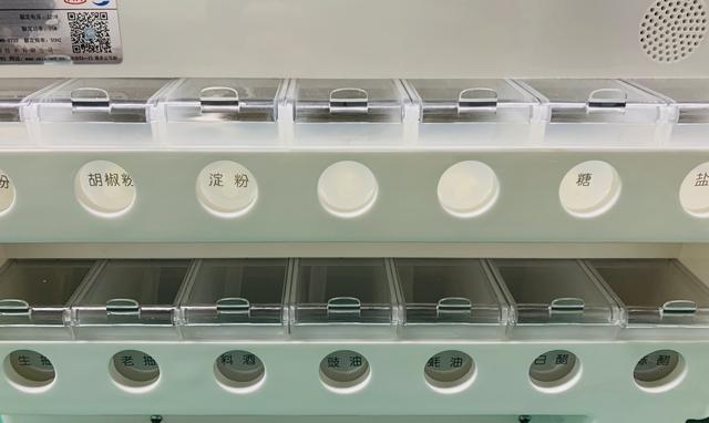 而且智能调味机还支持最多14种调味料的使用。在机器的后方有14个专属的调味料盒。无论是粉沫料(食盐味精鸡精胡椒粉淀粉白砂糖等等)还是液体料(生抽老抽陈醋白醋料酒蚝油等)都支持。可以说是非常的丰富