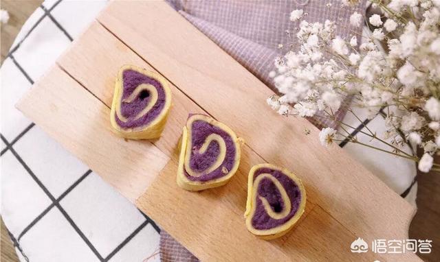 做法:紫薯去皮切小块。然后上锅蒸熟;蒸熟后的紫薯稍稍放凉下。加入一点牛奶放入搅拌机打成紫薯泥(牛奶不要多。一点就好。打出来的紫薯泥不要太稀);鸡蛋敲入碗内打散。加入牛奶和适量面粉拌匀;平底锅开小火。刷点油然后倒入蛋液。摊成蛋饼。熟后取出;最后涂上紫薯泥。