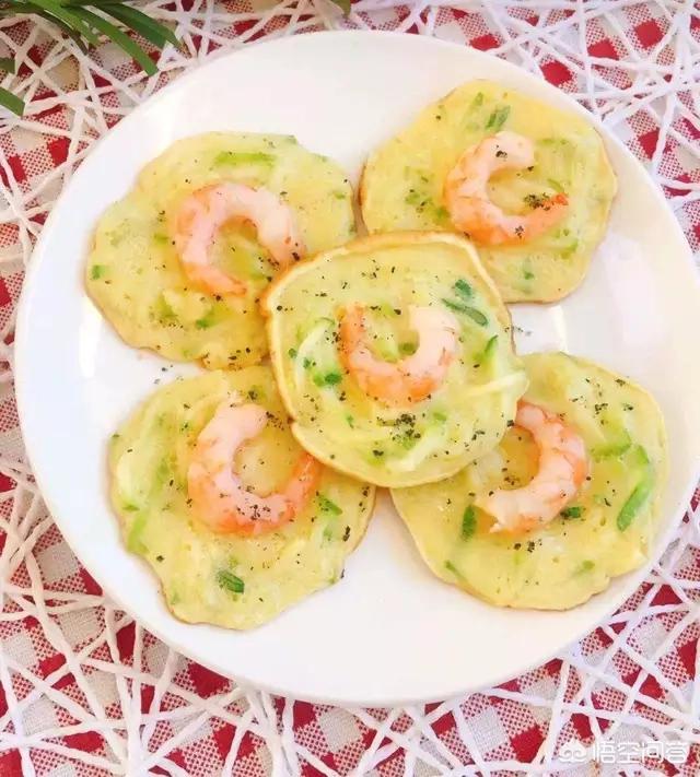 食材:西葫芦、虾仁、鸡蛋、面粉