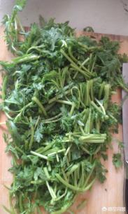1、 浸泡、清洗茼蒿(为了去掉农药。我用了食用碱面。浸泡15分钟。清水漂洗干净)