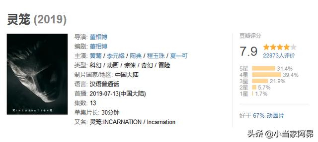 作为末日科幻题材的3D动画。《灵笼》在国产动画片里属于相当罕见的了。该片豆瓣评分7.9。由bilibili、三体宇宙(上海)文化发展有限公司和制作方武汉艺画开天文化传播有限公司联合出品。上映于2019年7月。在bilibili上也得到了6.3万人点评。