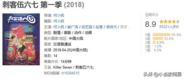 《刺客伍六七》第一季首播于2018年4月。豆瓣评分8.9。是一部非常另类、却又极富人气的国产2D动画。不但曾入围法国昂西国际动画电影节主竞赛单元。以及两度入围白玉兰奖。还在2018年12月。随天仪研究院的商业卫星一起发射上太空。成为全球第一支飞入太空的动漫形象。