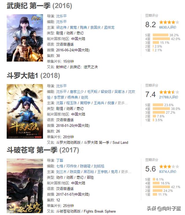 第一。《斗破苍穹》。《斗罗大陆》是根据网络小说改编的。而《武庚纪》是根据漫画《封神记》改编的。三部国漫都是改编的作品。那么动漫的好坏定然与原著的质量不可分离。