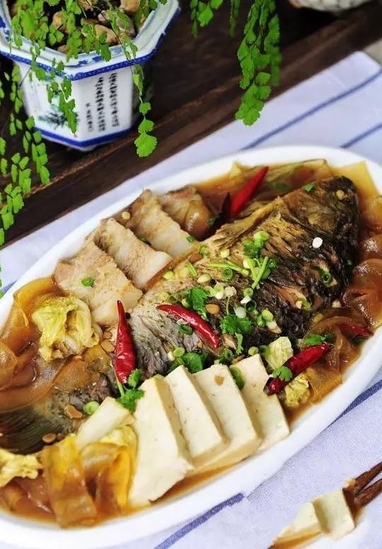炖鱼时间要充分。至少30分钟。这样鱼和肉的味道既能充分释放。又相互渗透融合。
