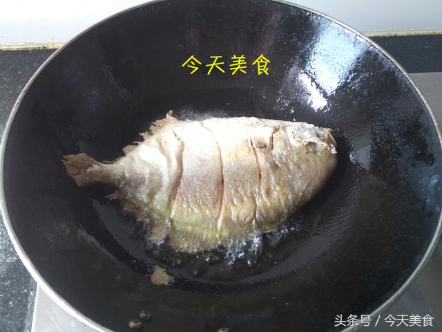6、锅里多放点油。大概是平时炒菜的两倍。待油温七成热时。将鲳鱼放进去中火煎。