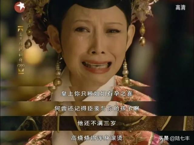 宜修哭诉她自己的孩子高烧烧得浑身滚烫。她跪着在大雨中爬了一夜。只求老天收了她。不要来收她孩子的话。
