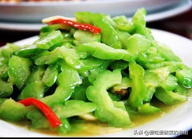 2清炒苦瓜:做法。先将洗净的苦瓜去籽切成片。配点青红辣椒。起锅烧水把却成好的苦瓜入、水中焯熟。起锅烧油下入葱姜蒜末爆香。下入苦瓜片。放入青红辣椒。放入蚝油。盐味精鸡粉翻炒均匀。勾薄薄的芡。放点调料油出勺即可。口味清爽。消火。