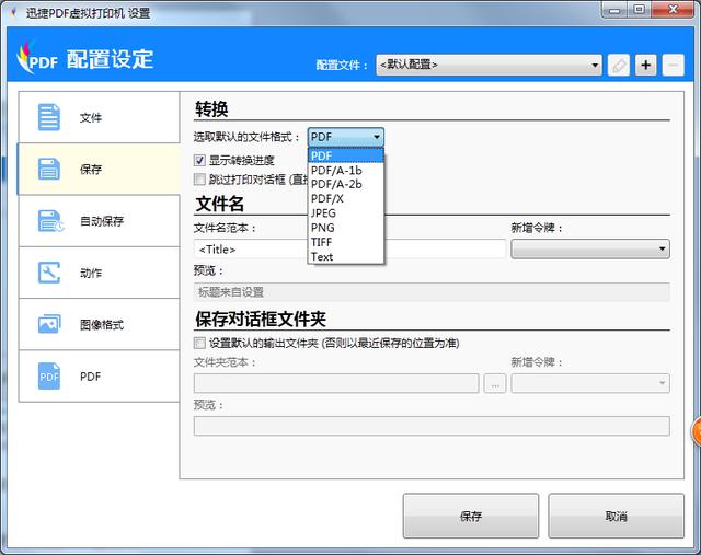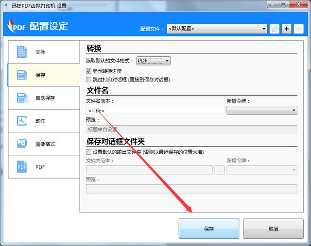 5、在完成设置后。点击界面右下角的“保存”按钮。之后当我们以迅捷PDF虚拟打印机的模式打印文档时。将会以该设置来输出文件。