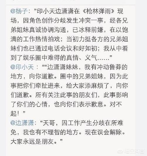 更加令印小天寒心的是。平时称兄道弟的演艺圈朋友也纷纷指责他。杜淳、李晨在微博上向他喊话。让他向边潇潇道歉。