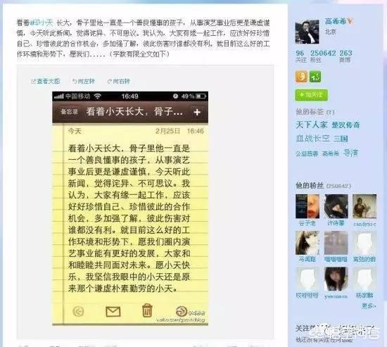 当然。也有一些明星分别表示支持印小天。如聂远。宋丹丹。韩雪。段奕宏等人。