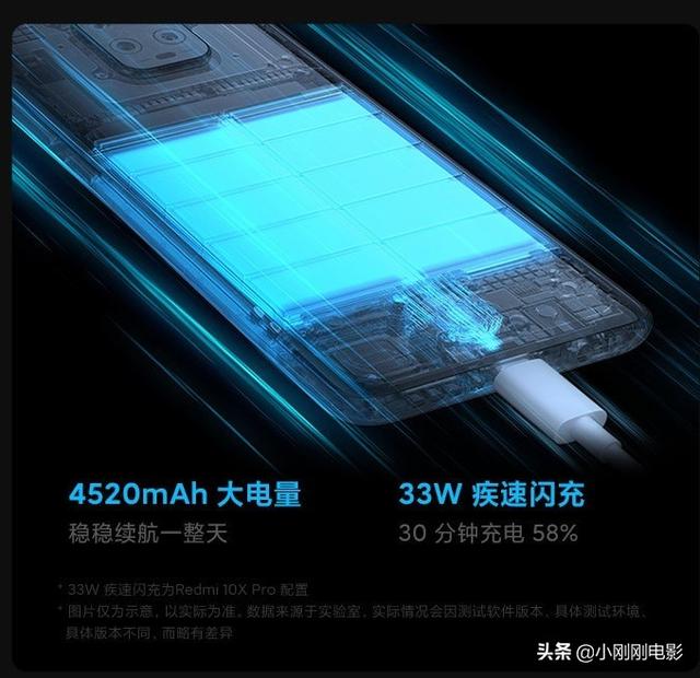 充电续航方面。Redmi 10X 5G版它使用的是一块4520毫安的电池。然后在天玑810的工耗下。4G情况下是稳妥一天。5G情况下的话就是属于续航一般。但是大多数情况下在外面也用不到5G网络。4G网络就能满足。充电速度是在这个千元机价位是比较充快的。毕竟是22.5W的快充。半个小时就可以充入57%的电量。充满需要87分钟左右。在这个价位比友商的某些机型还是要快了不少。