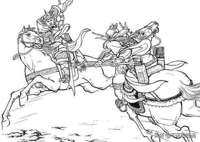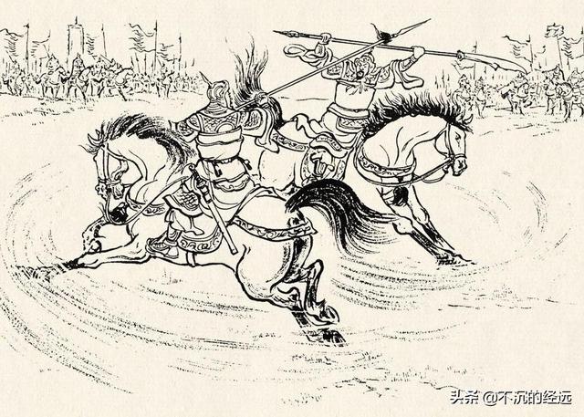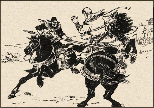 第二次单挑。五十回合。难分伯仲。太史慈率先夹住了孙策的枪。而孙策也夹住了太史慈的枪。双方拉扯下马。