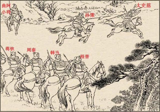 当时孙策带着程普、韩当、蒋钦、周泰等十二位名将在山顶巡视。而太史慈属于远道而来。是专门跑过来寻找孙策决战的。他身边只有一位曲阿小将。可以说。孙策人多势众。在心理上有备无患。应该略占优势。