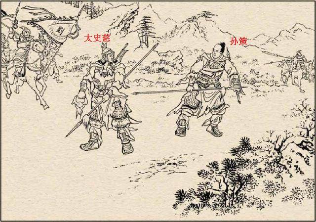 第一次单挑。五十回合。不分胜负。此后。太史慈担心对方人多。就把孙策引到了山背后。