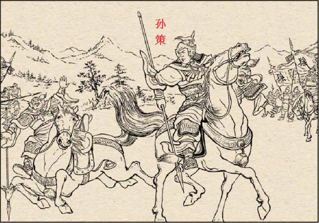 孙策首次登场时。年方十七岁。当时孙坚跨江击刘表。在樊城攻打黄祖。双方布阵于野。孙策全副披挂。挺枪立在孙坚一侧。