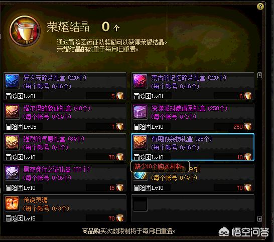 4.冒险团荣耀结晶商店花费70个荣耀结晶购买84个强烈的气息。每月限购1次。