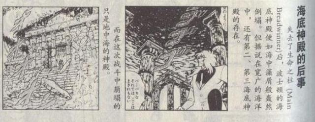 其实。在集英社于2001年编辑出版的由车田正美监修的圣斗士资料画集《圣斗士星矢大全》中有这样一小篇章对海皇波塞冬的海底神殿的介绍。名为“海底神殿的后事”。内容阐述在占有地球¾面积的广阔海洋中。此次圣战中倒塌的海皇神殿并不是波塞冬唯一居住所。而在浩瀚无边的海洋中据说还存在第二、第三个甚至更多海底神殿的存在。具体数量我们不得而知。但已知此次崩塌的是位于地中海的神殿。