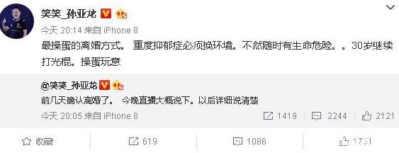 事业有成的笑笑情场得意。在2018年2月12日宣布和潘慧结婚。本以为人生走上巅峰的孙亚龙。却没想到仅仅时隔3个月。5月5日笑笑便在微博宣布离婚。随后风雨满楼。经多方查证后笑笑坦言了女方的出轨事实。30岁的孙亚龙彼时已经人到中年。舞不动剑。也无法挽回失去的青春和爱情。剑舞红颜笑成为绝唱。