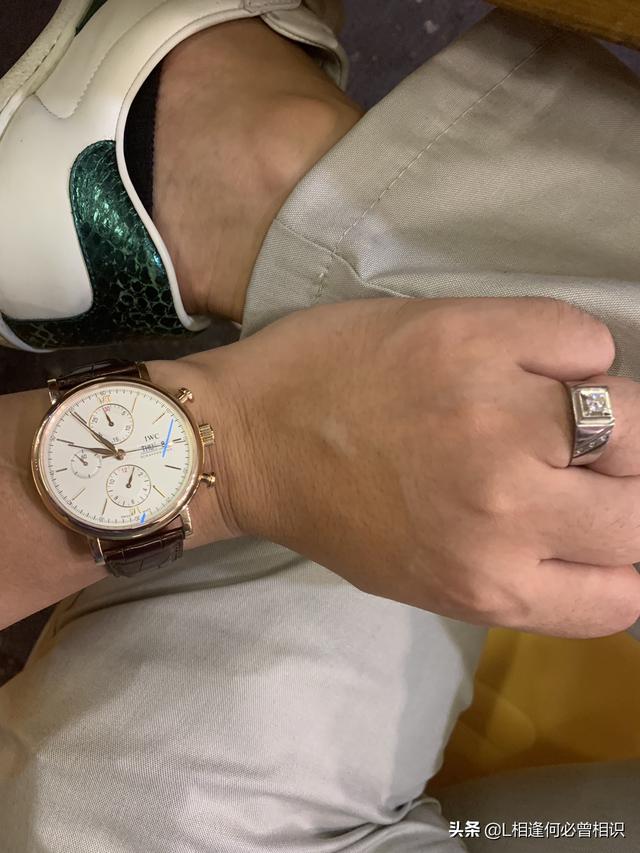 前几天逛商场又新买一个万国柏涛菲诺计时 玫瑰金表盘的。性价比不错。同样金表比(江诗丹顿。爱彼。劳力士)便宜一点。