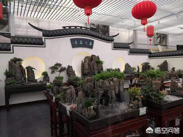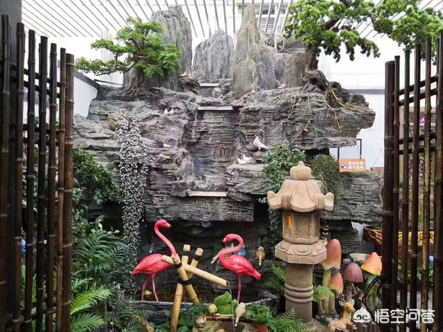 特别喜欢逛的就是盆景盆栽的区域。经过精心修剪的盆栽在古色古香的花盆衬托下。姿态优美。格外吸引人。真想每一盆都搬回家呢。一些非常有风格的盆景区域会把背景也布置的身临其境。黑瓦白墙下是一座座形色各异的假山。绿植点缀其间。还有缥缈的云雾感。远远望去都是很美的。不喜欢小规模假山石的。这里还有巨型的假山。小瀑布倾泻而下。流水潺潺中。火烈鸟和蘑菇的雕塑让整个画面充满了自然生趣。