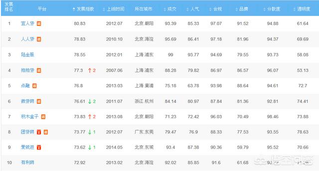 如上图所示。按发展指数进行排名的话。前六名分别是宜人贷、人人贷、陆金服、拍拍贷、点融网以及微贷网。发展指数是对一个平台进行的全面评估、综合考量。是最可靠的测算方式。