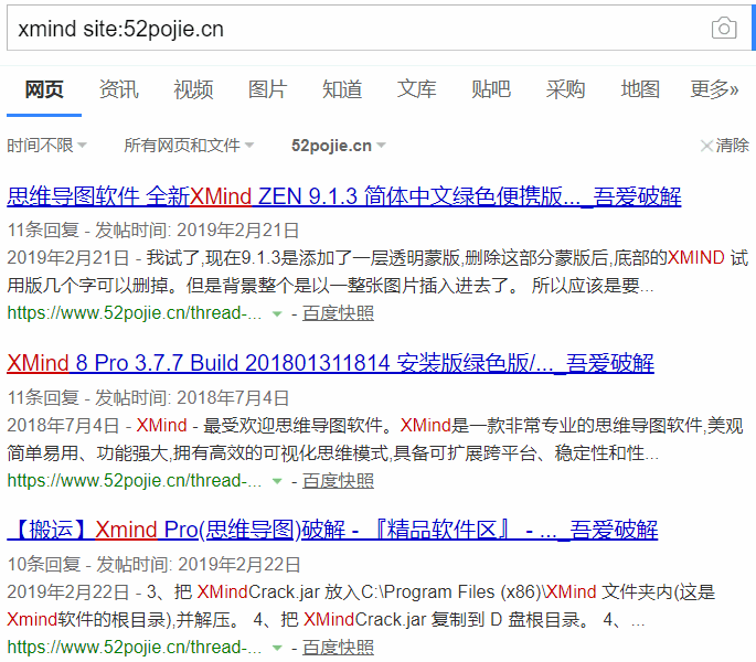 奇客常用这个办法:百度搜索“软件名 site:52pojie. cn”。如上图。一般都能找到相应网盘下载。且多数不需要注册。PS:虽然屡试不爽。低调使用的好。