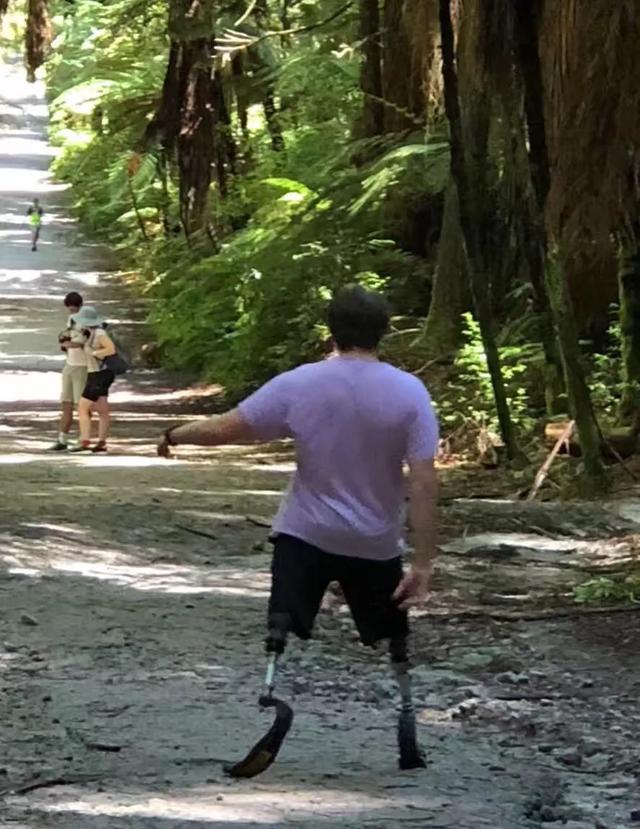 就在这样一个原生态的森林公园里。我遇见了一位双腿截肢的男士。他的身边没有轮椅。同行的家人也只远远地跟着他。他一路上不需要任何人的帮助。徒步走完了红木森林公园。当时我肃然起敬。徒步红木森林公园对于我来说都不是件很容易的事情。他很坚强。几次三番踉跄。但始终没有摔倒。