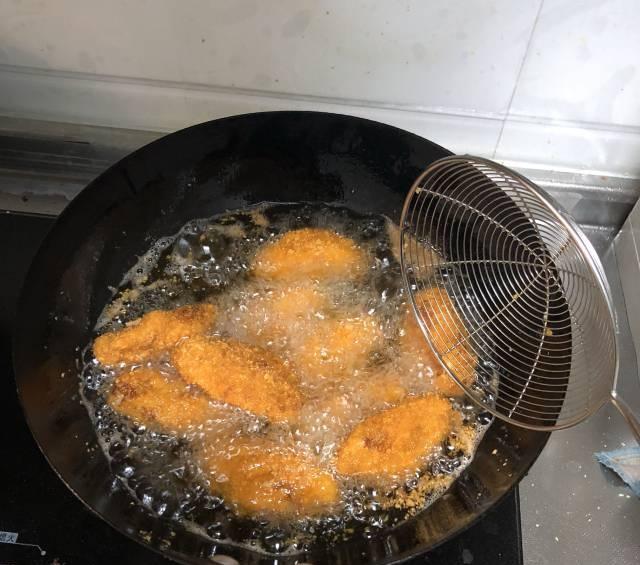 》》炸鸡翅油温的控制很关键。鸡翅在炸的时候一定要分两次去炸制。第一次炸鸡翅刚下入油锅的时候油温不能过低。如果油温过低那么粘在鸡翅表面的面包糠就会马上散开。这样炸出来的鸡翅口感就不酥脆。正确的做法应该是六成油温下锅。鸡翅遇到高温后马上就定型了。这样粘在鸡翅表面的面包糠就不会散开。