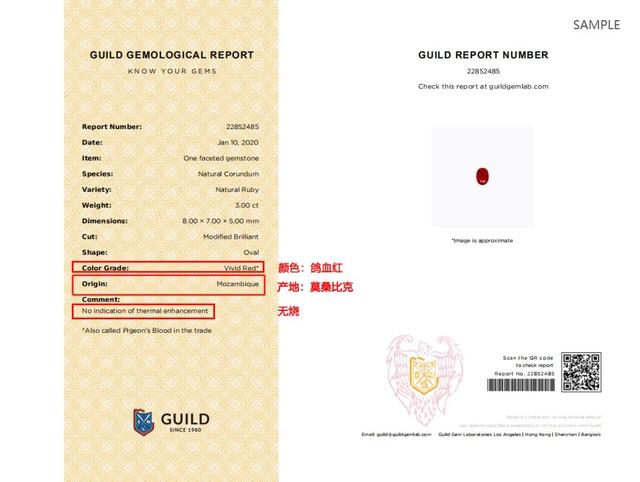 GUILD莫桑比克红宝石报告样本