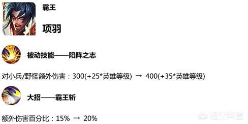 提升等级:项羽大招霸王斩的被动效果为对比自己等级低。或者和自己等级相同的单位造成额外15%的伤害(在体验服当中已经上升至20%)而打野位置是众所周知的经验分配最多的位置。打野项羽很容易就能到达高等级。并利用大招打出致命输出。