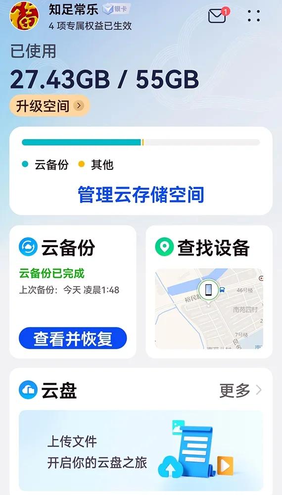 我安装有68个运行软件。而我购买它的使用这么长时间才76.54GB。我在华为宣传云空间时。划去55元钱。购买了50G云空间。加上购买手机时送的5GB。现在云空间几乎用了50%。见下图所示