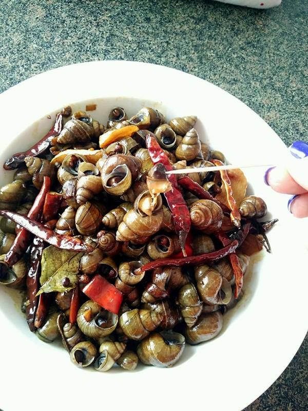 江南一带流行吃炒螺丝。长沙人也爱吃“嗦螺”。之所以叫嗦螺。大约与吃食时的动作以及声音有关。吃嗦螺时。老手一般用手指或者筷子夹着嗦螺。嘴凑上轻轻一“嗦”。螺肉就出来了。再用牙齿咬断。连着汤汁一起吃下。