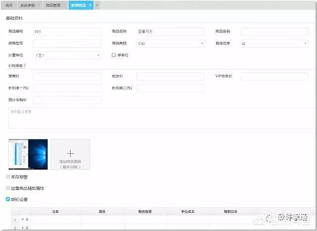 一 商品管理 支持商品图片上传、期初库存设置、商品子件维护(针对组合类商品)、价格设定等。