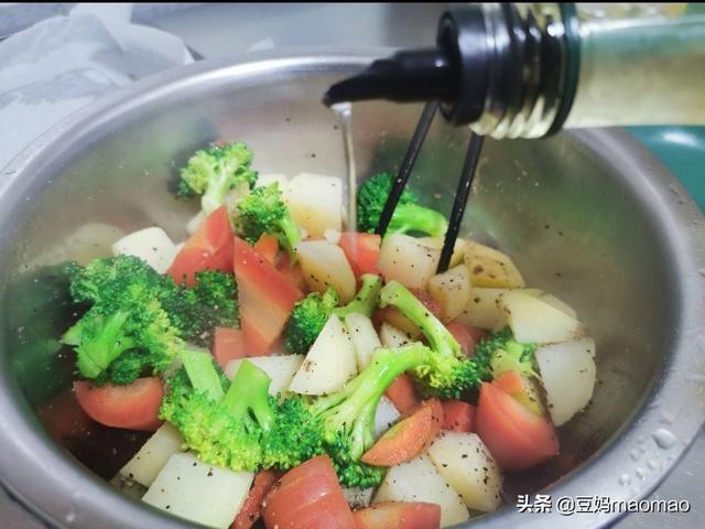 3、全部盛入盆里。加入少许盐。黑胡椒碎。再倒入少许橄榄油。搅拌均匀即可。